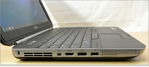 まずはLatitude E5520の左側面から紹介。拡張カードスロットは、PCカードスロットか、54 mm ExpressCardスロットのどちらかを選択できます。