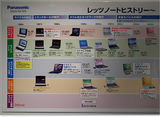 レッツノート15周年記念スペシャルイベントなので、「レッツノートヒストリー~クリエイティブモバイルへの道」という歴代機の展示がありました。