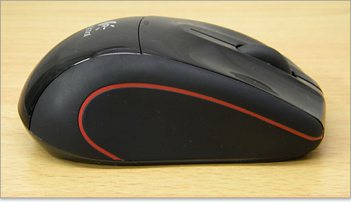 多く流通するマウスの中では、比較的小さめなサイズです。特に多機能というものではなく、左右のクリックボタン、ホイール(上下スクロール・ボタン・水平スクロール)のみです。カラーバリエーションは3色(ブラック / レッド / ライトシルバー )で、今回のはブラック(型番 : M505BK )。
