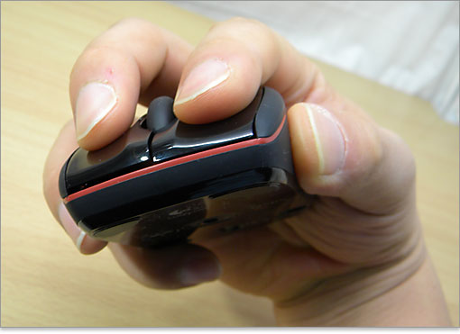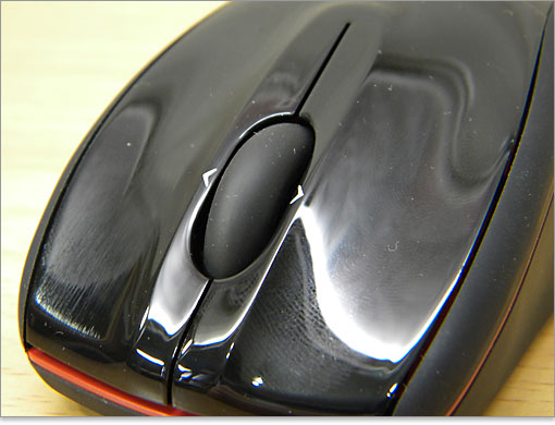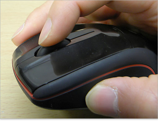 スクロールホイールに人差し指を置く。滑りにくいラバー素材でコーティングされています。