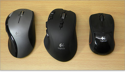 ほかのロジクールマウスとサイズを比較。左から、MX620、G700、m505です。
