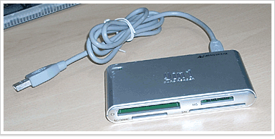 デスクトップの場合は、3.5インチベイに内蔵型のカードリーダーを搭載することができます。ノートパソコンなら本体に内蔵しているがあります。また、USB端子で接続する外付けのカードリーダーもあります。