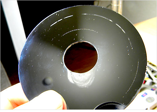 プラッタ プラッタはデータはが記録されたディスク盤。落とした衝撃やヘッドの不良で摩擦により損傷することがあります。大きな損傷では復旧不能。 |