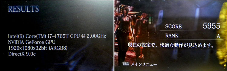 バイオハザード6では、フルHD解像度 (1920 × 1080)のプレイがRANK Aの快適。スコア5955と出た。ちなみに消費電力は76Wほどであった。