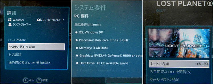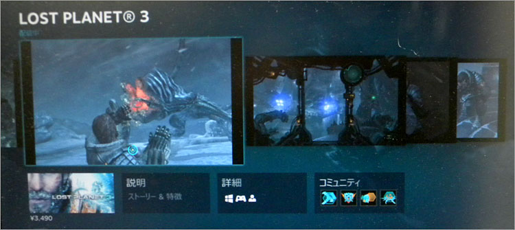 例えばLost Planet3に興味を持っで購入を検討したとする。そこで、キャプチャー画面をみてどのようなゲームなのかイメージできる。