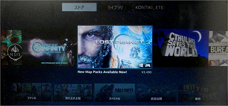 ALIENWARE AlphaにはSTEAMがインストールされている。STEAMのBig Pictureモードに連動しているため、コントローラーだけで楽しめる。※Big Pictureというのは、コントローラー操作に適した操作画面(UI)~これについては後述する