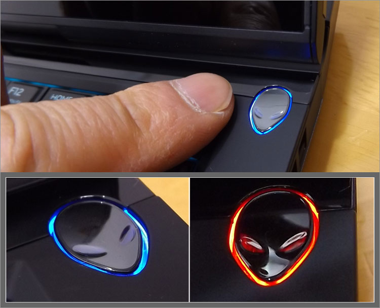 右上にエイリアンヘッドの電源ボタンを配置。これもLED設定が可能。