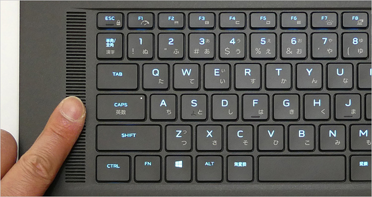 パームレストはアルミと思われる。キーボードの上部にも吸気口を配置している。