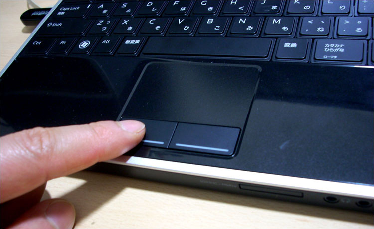 タッチパッドとクリックボタン。この頃はタッチパッドエリアがかなり小さい。タッチパッドはややザラザラした手触り。