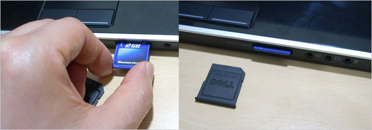 Express Card 34/54mmカードスロット装備。使用しないときは防塵のため付属のダミーカードを挿しておく。 サイズ幅34ミリのExpress Card/34、サイズ幅54ミリでL字型のExpress Card/54の規格に対応。従来のノートパソコンに使われてきたPCカード(Card Bus)とは互換性がない。