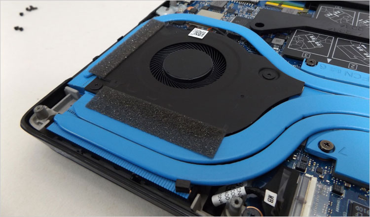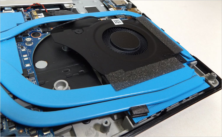 G7-17 (7790)の内部全般。2.5インチHDD、メモリ、M.2 SSDの換装くらいは行える。ただし自己責任であるが・・。広範囲でヒートパイプが張り巡らせてある。
