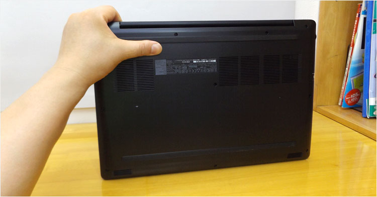 リコリス・ブラックは、半光沢でさほど濃いブラックではない。控えめにラメ粉が含まれており、微かにキラキラしたスパークリングである。天板中央にはメタリックブルーのDELLロゴを配置している。