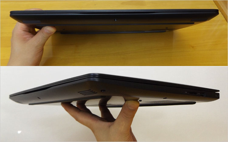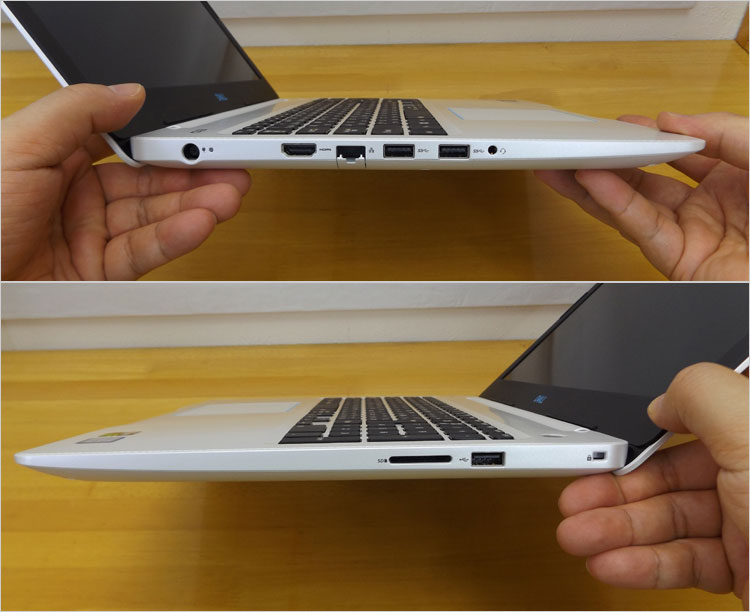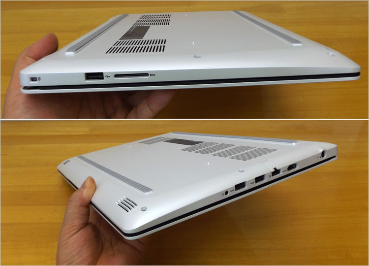 G3-3579(ホワイト)の左右側面デザイン。ライトミドル・スペックを実装しながら23mm厚と結構薄型デザイン。