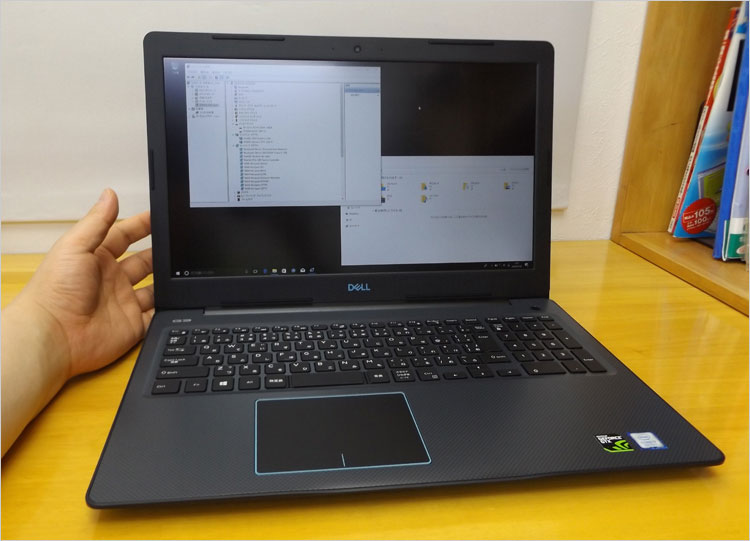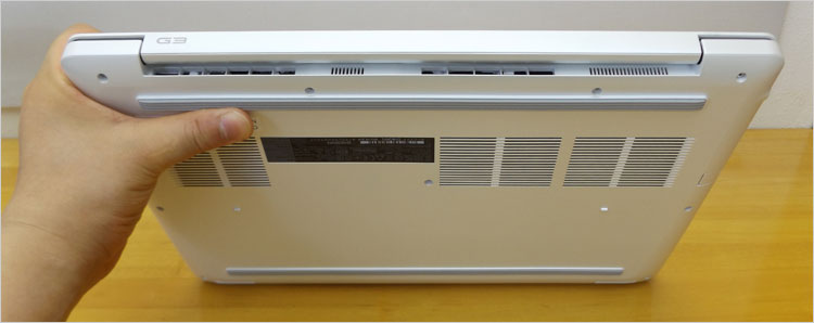 ディスプレイを開いた時の、G3-3579左右側面デザイン。単体GPUとデュアルファンを内蔵しても、この薄さとは時代の流れを感じる。