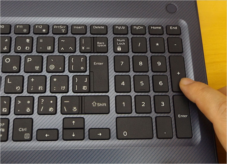 ホームポジションの様子。テンキーがあるのでやや右寄りとなる。