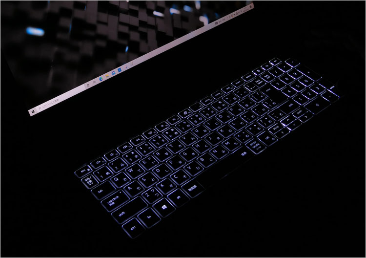 なお、G15-5510では、Inspiron 15(7501)などで採用されている型のキーボードを搭載している。詳細はバリエーションを含めたキーボード単体のレビューを参考にしていただきたい。キー配列とキーピッチの情報、デザインなど掲載画像が特大サイズなので、以下のリンク先にて細部までチェックしてみよう(そこには、G15-5510で撮影したものも特大版で掲載している)。