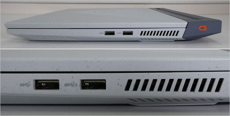右側面では、USB 3.2-Gen1(1レーン・5Gbps)×2基。右側の1基はPowerShare対応。