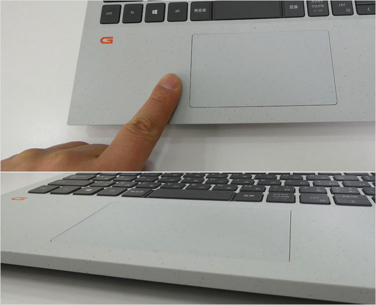タッチパッドにも凝灰岩の粒子っぽい装飾を施している。