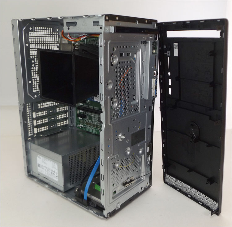 290Wの電源ユニット。+12V系統が2つで、それぞれ14A、16Aが最大となっている。電源ユニットは奥行き14cmのATX電源と形状が同じだが、ケーブルの出力がDELL固有のものとなっており、そのままでは換装できない。(ただし、変換ケーブルがアマゾンなどで市販されているので対処できそう。)