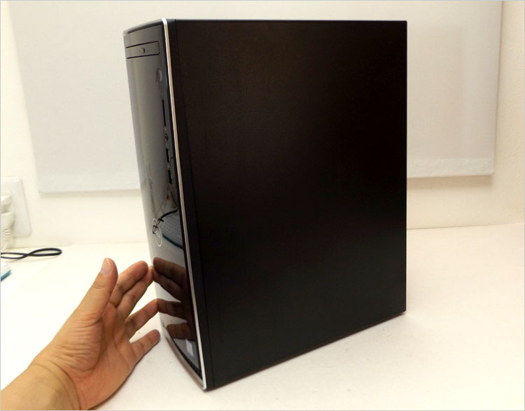 フロントパネル以外はスチール製。右側面にはなにもなし。通気口もエンボス加工ロゴもない。