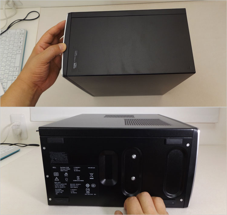 幅: 160 mm × 奥行き: 294 mm × 高さ: 374 mm 。DELLの公称では最小重量 約5.27 kg