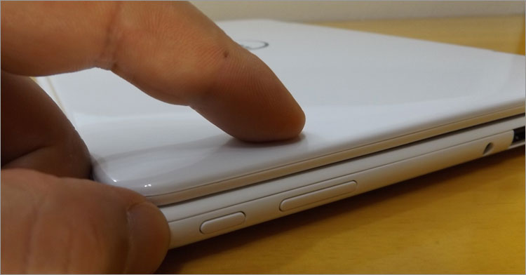 側面が丸みを帯びているので、爪を立てずともボタンが押しやすい。ただ、電源ボタンの位置はタブレットPCと同様であり、ノートブック形態の移動のとき、誤って触れてしまうこともある。ここは製品上の特性として留意した方がいい。