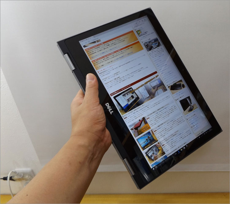 タブレットモード。ディスプレイベゼルにはWindowsキーが配置されていないので、中央を掴んでも誤って触れてしまう煩わしさはない。