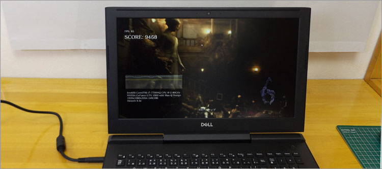 今回、手元のInspiron 15(7577)ゲーミングには単体GPUに「NVIDIA GeForce GTX 1060 6GB GDDR5」 (Max-Q Design)を搭載している。(レビュー時点では最高スペック)。Inspiron 15(7577)ゲーミングの薄型化はMax-Q Designの恩恵といえるのだろう。
