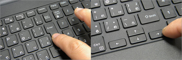 気になるのはEnterキーの左右幅が狭いこと。テンキーがあるため一番端になく、隣のキーに接触しやすい。あまりこういう言い方をしたくないが、「慣れるしかない」。¥やBackSpaceも小さいのでやや気になる。カーソルキーも小さいが、配置スペースが独立しているので誤接触による煩わしさはない。