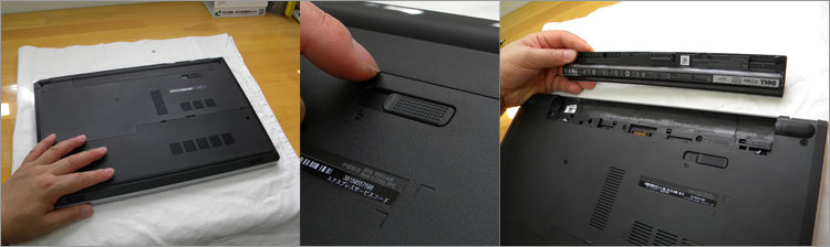 底面のリリースラッチをスライドするとロックが外れ、バッテリーを外せる。