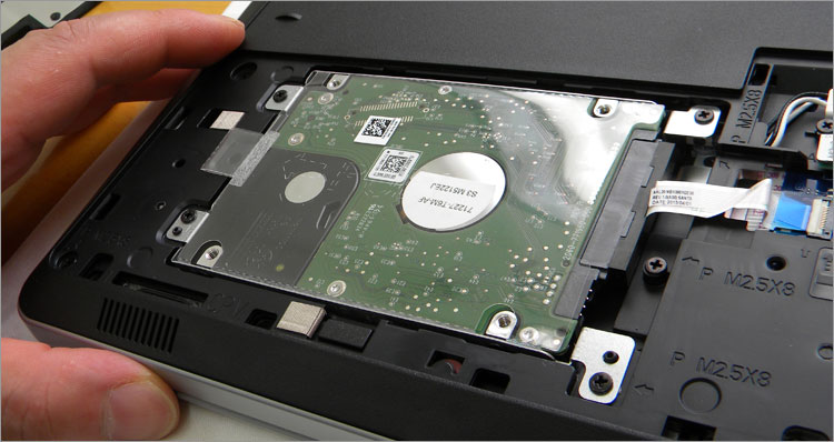 マウンタによって装着されている2.5インチHDD。