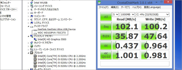 ウエスタンデジタル製のHDDだったが、アクセス速度は最近のトレンド通り。