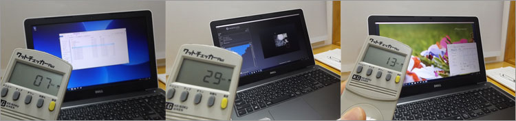 非光沢の仕様では、どうやら見た目の判断でTNパネルのようだ。左右角度からならまずまずだが、上下からの角度では色度変移が激しい。ネイビーのInspiron 15(5567)をレビューした時は光沢タッチ仕様であったが、そちらは広視野角なのでIPSパネルと思われる。いかんせん、DELLサイトにはパネルの仕様までは記載されていないので、視野角に関しては実機で確認するしかない。非光沢仕様のモデルはこの通り、視野角は狭いが、映り込みは少ないので目には優しい長時間向けといえる。