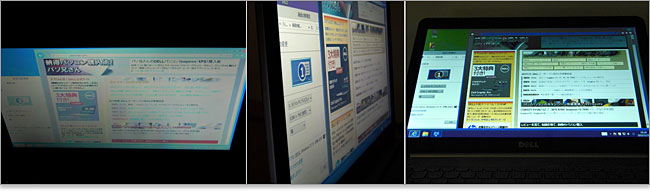 DELLサイトでは160度の視野角と言っているが、あくまでメーカーの基準なので実際に自分の目で確認してみる。ちなみにレビュー機は15.6インチで定番である1366 × 768の解像度である。