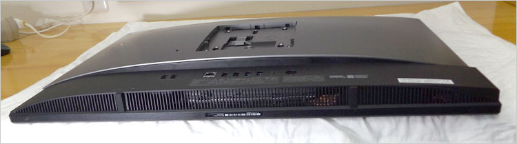Inspiron 27 (7777)の上部。底面から吸気して上部で排気するエアーフロー。