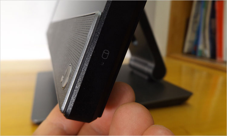 そしてフレームレスの狭額ディスプレイ。ざっくり測ってベゼル幅が8mmくらい。ゲームや映画など動画コンテンツに没頭でき、世界観に浸れる。