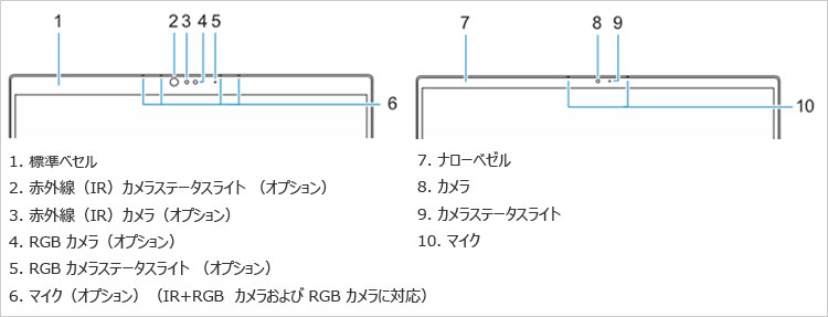 クイックスタートガイドに選択できるディスプレイベゼルが記載されている。上部のベゼルも狭額なタイプは「ナローベゼル」と呼ぶらしい。ナロー(Narrow)とは”狭い”という意味。ナローベゼルではオプションで赤外線(IR)カメラを追加することはできない。