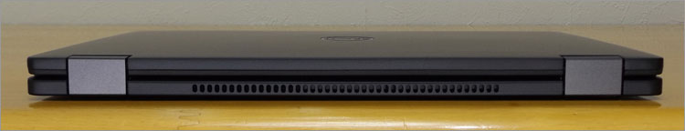 底面にもシリコン・コーティングが施してある。2本のスタンドゴムの間で後方寄りに吸気口があり、高負荷時にはやや風切音が発生する。モバイルノート同様にUシリーズ搭載なのでさすがにファンレスではない。手前にスピーカーを配置しているが、あまり傾斜にはなっていないので、ほとんど地面すれすれ。ただし、音量出力は高々知れているので、配置がデメリットになっているほどではなかった。
