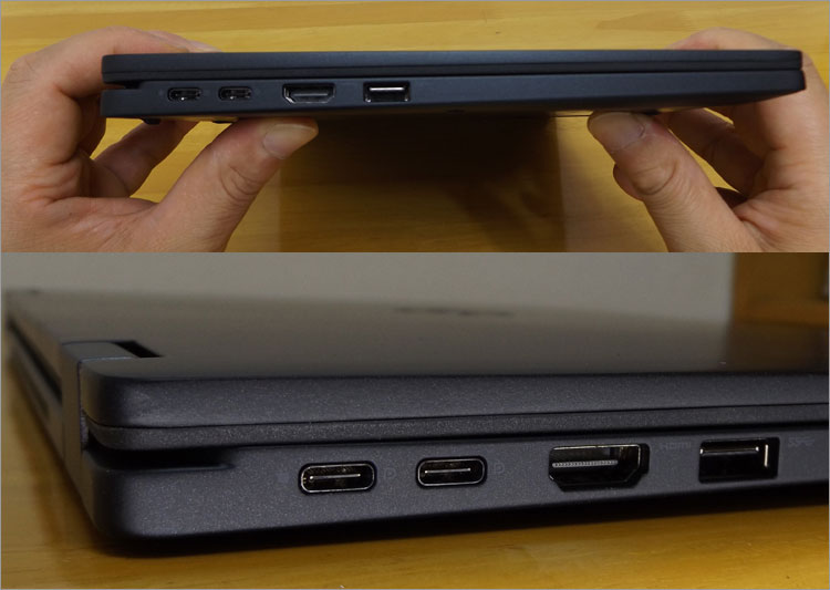 USB Type-C端子 × 2基、HDMI端子、USB3.0端子を配置。
