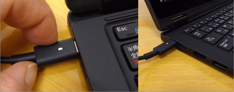 奥のUSB Type-C端子は、ACアダプタの接続先にもなっている。プラグの先端が電源のLEDライトになっている。
