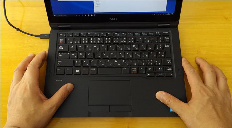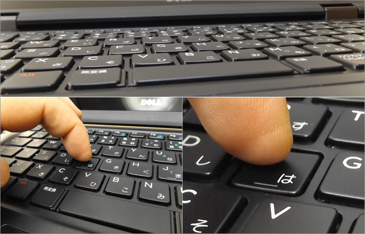 Latitude 5289 2-in-1のパームレストにはシリコン・コーティングが施してあり、滑らかな手触り。天板や底面のコーティングよりも厚めに加工されていて、しっとり感が増している。キーボードパーツは、13.3インチモバイルのLatitude 13(7370)などと同じ型だと思われる。使い心地は通常のDELLモバイルノートと変わらない。