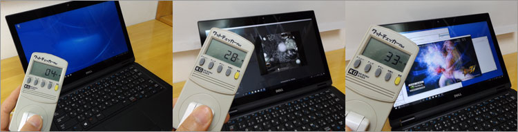 ※消費電力を測るときは、バッテリ満充電状態、ACアダプタ接続で行っている。
