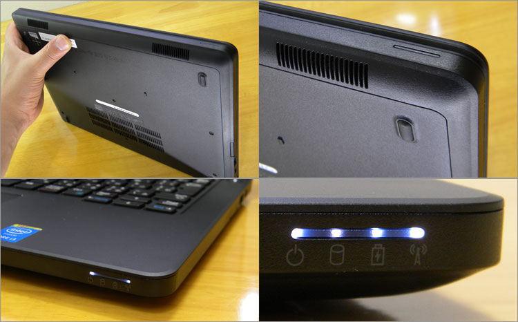 左側面にはセキュリティロックケーブル穴、排気口、ヘッドセット端子。なお光学ドライブは非搭載となっている。右側面にはSDカードリーダ、Power Share USB仕様のUSB3.0端子×1基を装備している。背面にはHDMI端子があったが、さらに右側面にmini Display Port 端子を装備している。