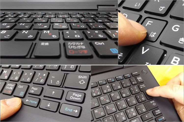 モバイルノートのキーなので、部分的に小さいキーが存在するが、形状をグループ化することで、視覚的に狭さを感じさせない工夫がされている。もちろん物理的には小さいのだが、「小さいキーを押さなくてはならない」というプレッシャーが軽減され、意外にも効果がある。