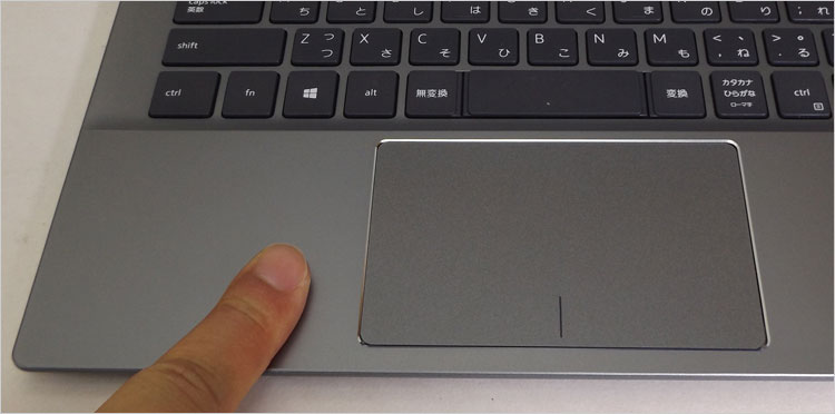 BackSpaceと¥のキーが小さいのでやや扱いづらいのがデメリット。カーソルキーに隣接するpg upやpg dnも位置が邪魔くさい。電源ボタンもここにあるメリットはない。オプションで指紋認証リーダーが追加できるが、その場合は電源ボタンと統合型になるそうだ。