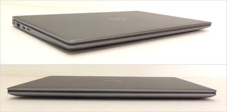 このLatitude 3301実機の天板には高級感があるアルミ素材を採用し、サンドブラストの梨地加工。アルマイト加工でさらっとした手触り。天板中央には少し窪んだ状態でクローム調のDELLロゴが配置されている。 ※アルマイト加工(陽極酸化処理)とは酸化皮膜を生成させる表面処理で、これにより耐食性と耐摩耗性が向上する。