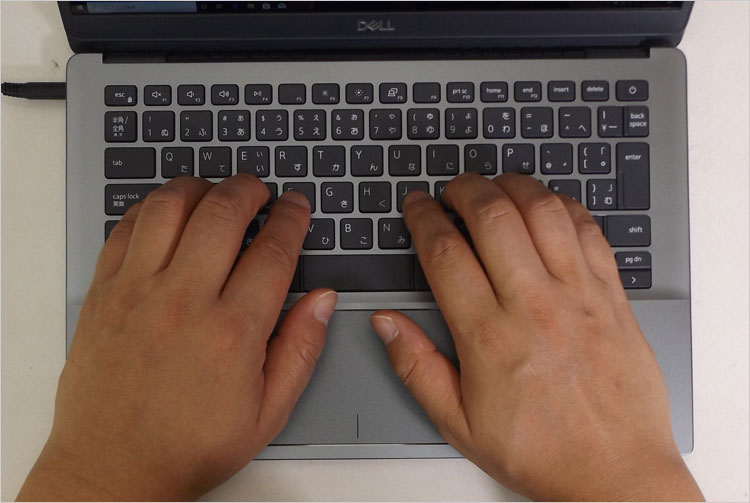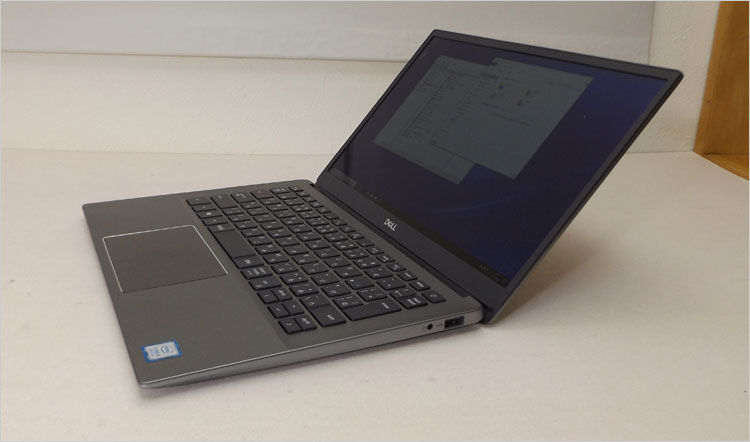 13.3インチにフルHD(1920 × 1080)の高解像度では細かい表示になるため、DELLの初期設定および推奨設定では150%拡大になっているが、ここでは(写真では)ドットバイドット表示-100%に設定し直している。ドットバイドット表示はかなり細かい見え方になるが、人によってはそれでも使える印象がある。個人的には小画面の高解像度ディスプレイに触れることが多くて、13.3インチに1920 × 1080はわりと許容範囲になってきた。