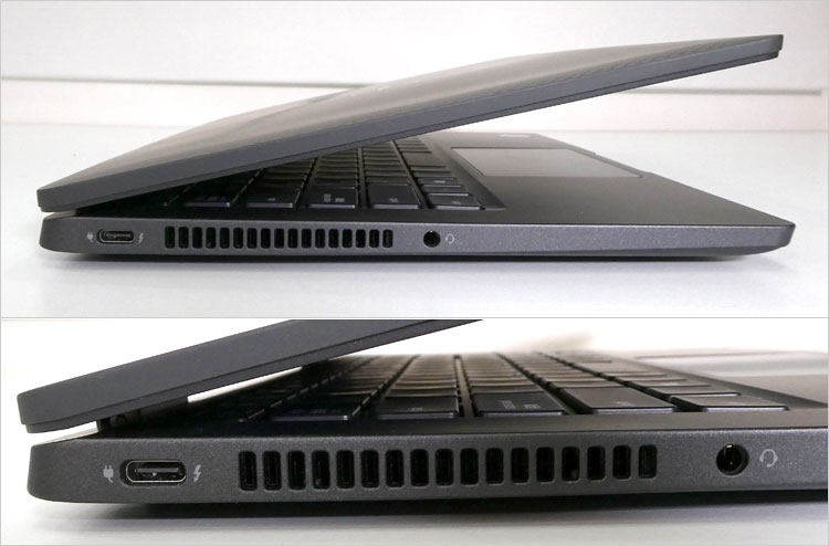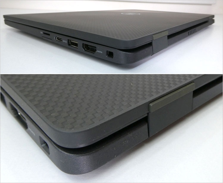 天板がカーボン・ファイバーおよび、アルミニウムの仕様がある。今回のLatitude 7320レビュー実機ではカーボンとなっているが、下地のベースはアルミ天板と思われる。