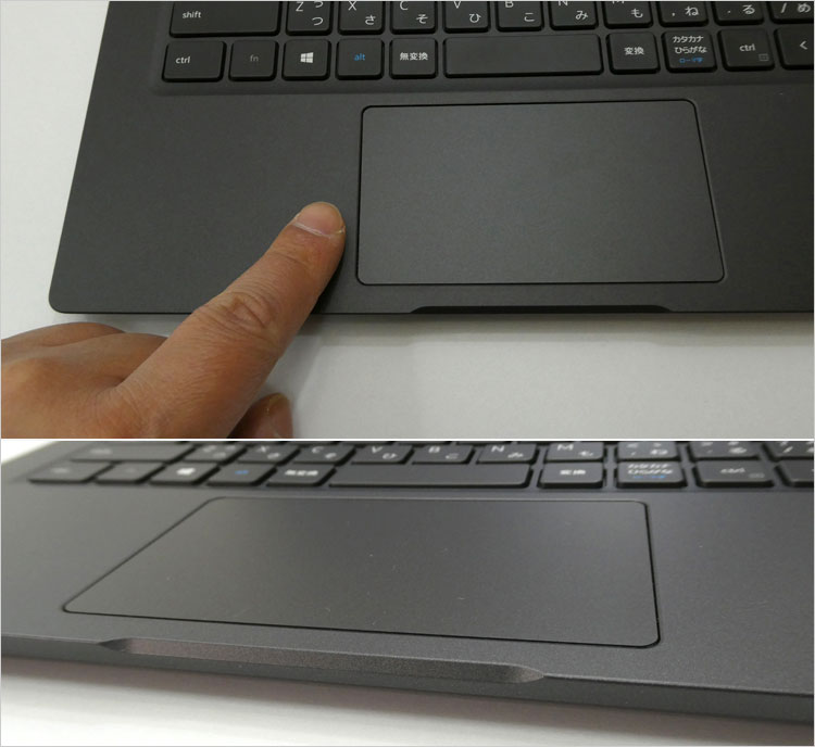 一体型のタッチパッド。サイズは平均的。