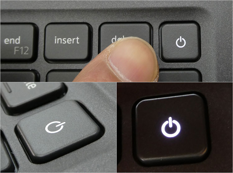 LED点灯する電源ボタン。マニュアルによれば、オプションで指紋認証リーダー付き電源ボタンもあるとのこと。